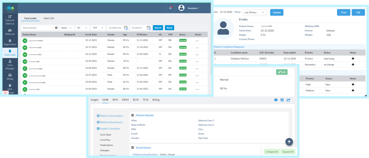 Integrated monthly reporting that includes all the conditions, notes and progress status of patient. This can be viewed and signed by the physician in their section of the portal.